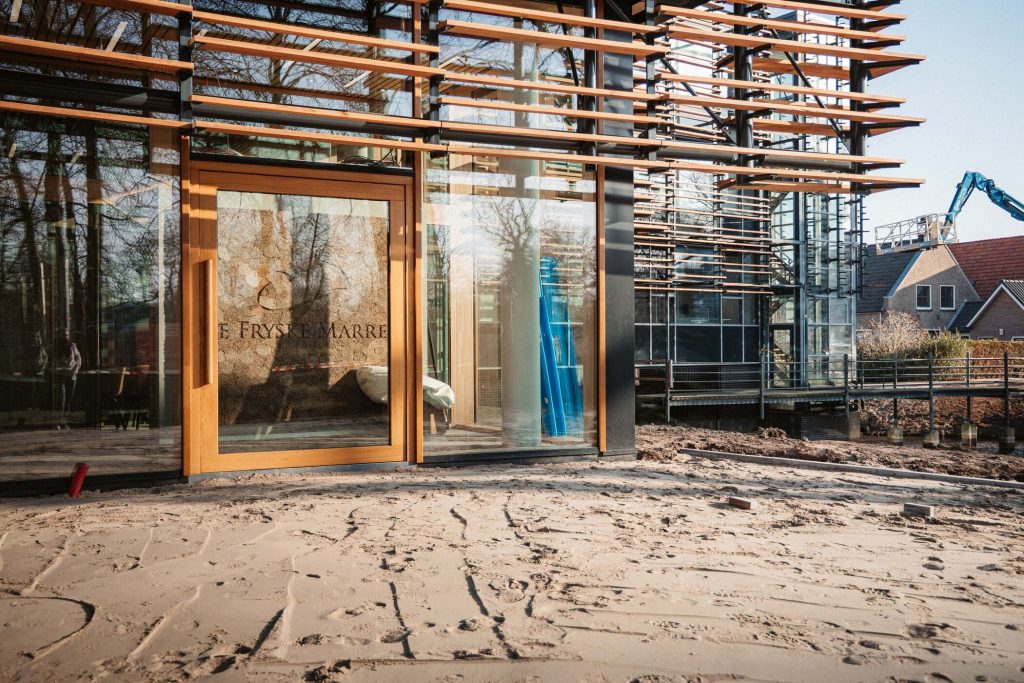 De nieuwe hoofdingang van gemeentehuis Herema State in Joure is bijna klaar. Vanaf maandag 9 februari gebruiken bezoekers en medewerkers deze nieuwe hoofdingang.