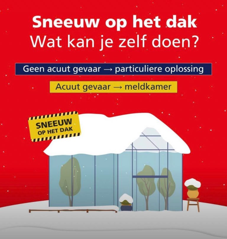 Door de recente sneeuwval en de verwachting van meer sneeuw is het belangrijk om daken te controleren op te zware sneeuwbelasting. Vooral platte daken en daken met stalen platen of met asbesthoudende golfplaten zijn extra kwetsbaar en kunnen doorbuigen of beschadigd raken.