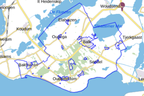 Voor alle duidelijkheid, het gaat om het buitengebied van de voormalige gemeente Gaasterlân-Sleat. Hieronder is het gebied binnen de blauwe lijn aangegeven.